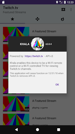 Enables a device to be a Wi-Fi controlled Twitch.tv viewer or remote control. This application will cease functioning on 12/31/18 when Twitch.tv removes API v3.