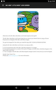 Mr. Men Little Miss Lock Screen by IconLogin® lets you unlock your Android device using a Picture Password on a keypad made up of Mr. Men and Little Miss images. ***This App is applicable for devices running Android OS 4.1 to 8.0.***