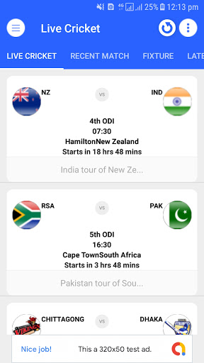 Live Cricket is an application that help users to watch live matches as well as this application contains all news update about cricket. The updated IPL schedule is also implement in it User can also watch recently completed matches. Users can also view the full detail of each match easily including, share, live matches to their friends.