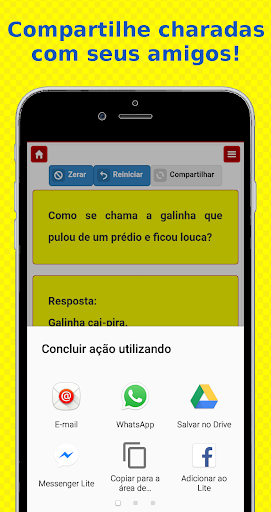 [✔] Escolha uma charada e compartilhe facilmente através de redes sociais (facebook, twitter, whatsapp...)