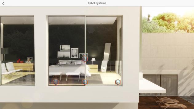 Use the Rabel Systems application to browse the products by Rabel. Wander around a virtual house that uses Rabel Systems. Look at the products details and discover their main features. Distinctively presented hot spots allow to navigate through the various details of the products.
