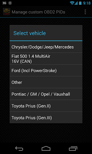 7) Usually this screen will not display any entries, unless you have added any pre-defined or custom PIDs in the past.