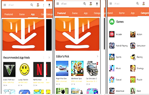 This new dFast app guide is a very visual app that guides the user's attention to help them to find the app he or she may be interested in. d fast download app guide main page shows you different tabs and menus to help you to quickly filter your search, looking for trending apps, games, collections...