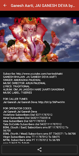 Tune into the spiritual music of Ganesh mantra, aarti, bhajan and popular songs with lyrics and download or share over Facebook, WhatsApp, Twitter, Email, etc.