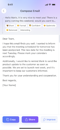 Compose AI is a perfect fit for everyone looking to uplift their writing - be it professionals, students, academics, freelancers, business owners, or social media enthusiasts. Say farewell to writer's block and hello to clear, precise, professional emails, and engaging social media posts with Compose AI.