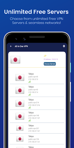 All in One VPN is an unlimited Free VPN proxy app with Fast VPN network server providing the most secure and seamless VPN experience ever! Just select the location you want to connect from, and All in One VPN will automatically connect to the fastest and secure VPN proxy servers available for you. Enjoy seamless content on the web with a hassle free experience!