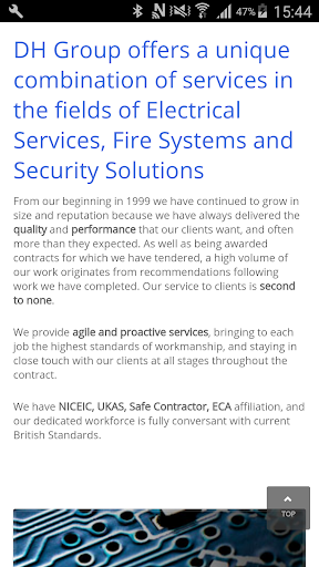 DH Group Website App: Providing Electrical, Fire and Security systems throughout the UK.