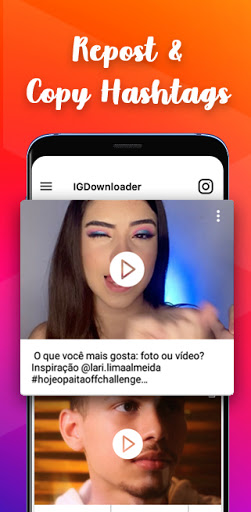 We’ve got it covered, IGDownloader lets you download Insta videos, carousel & IGTV with only 3 taps, download IG videos, Repost and copy hashtags very easily.