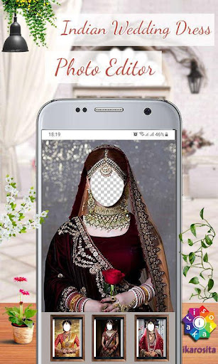 For those who like Indian wedding dresses but don't have enough money to rent or buy it because it is just for photos. don't worry, there is now an Indian Wedding Dress Photo Editor application. You can use this application for free and it's very easy. Simply determine the costume you want to edit, then take a photo in the gallery to put on the dress. And be you who already wear a beautiful Indian wedding dress.