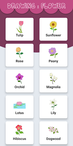 This flower drawing application looks very interesting and colorful, it is also friendly to your child, this flower drawing application is not only used for children but also for those of you who want to learn how to draw and color step by step quickly.