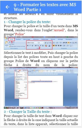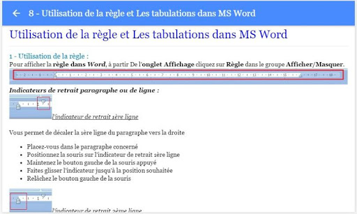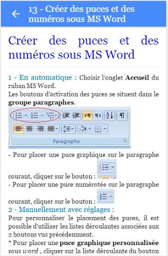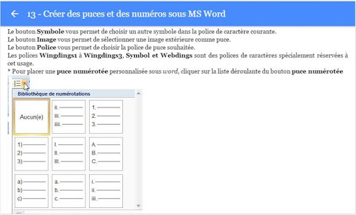 d'accéder a des leçons du fameux logiciel Microsft word, depuis votre Smartphone.