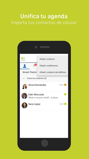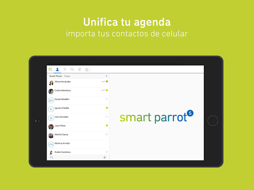 Con smart parrot contarás con funcionalidades que van desde la telefonía, mensajería empresarial; hasta tecnologías de presencia, reuniones en línea y videollamadas, desde cualquier dispositivo y desde cualquier parte del mundo, lo único que necesitas es conexión a internet.