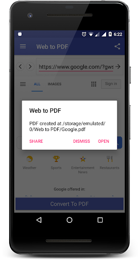 Share: Web to PDF Converter app allows to share the all the converted file.
