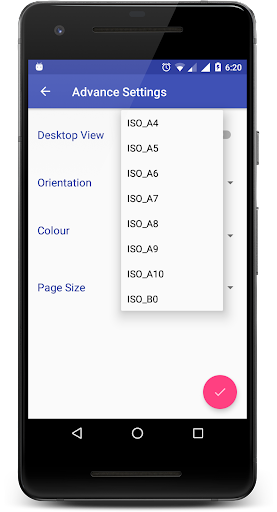 Page Size: Web to PDF Converter app can save the PDF file based on the Page type selected the settings. Web to PDF Converter app having an option or more 30+ page type e.g A4, A1,A2, Letter, Tabloid, Legal, Foolscape etc..