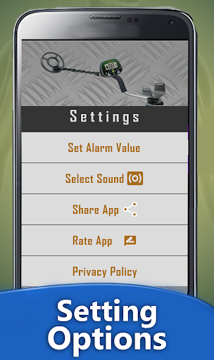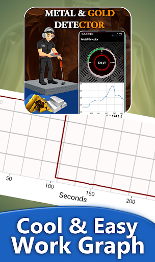 Cool graphics and compass shape graph of Metal and Gold Detector.