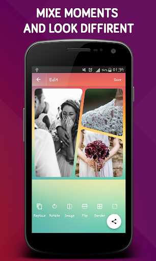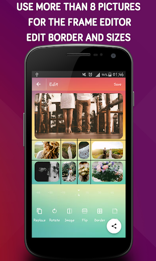 You can edit the pictures you want from the gallery and arrange them into a frame.