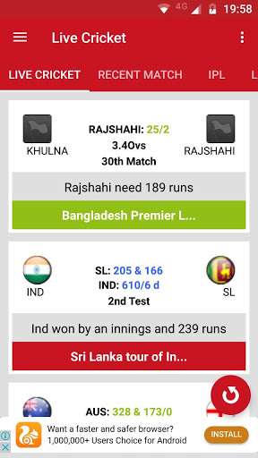 Get live Cricket score in your finger touch. * Live Score With Statics. * Cricket News. * Precious Match Details. * IPL * No Payment Needed