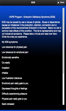 The self-help assignments help the individual to evaluate their symptoms,thinking and behavior to make healthier choices which support ongoing recovery. The app includes information about Endorphin Deficiency Syndrome,Neurochemical incidents,interventions,Post-Acute Withdrawal,nutrition,exercise,humor,brain entrainment,and ways to protect the healing brain. Links to 12 step meetings and daily meditation readings are also included. Direct call to the programs for support and much more!