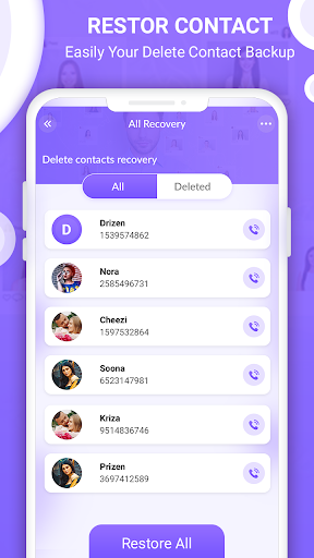 This All Recover - Restore Files app will solve your problem. It will fully scan your phone storage looking for deleted photos, videos, contacts and list them in an easy manner that will help you to restore them back to your phone storage. All Recover - Restore Files is the easiest way to recover deleted contacts and Recover all Photos and Videos from your phone without needing a computer or synchronization.