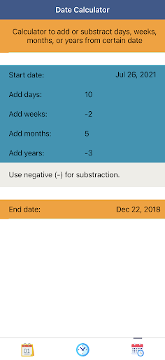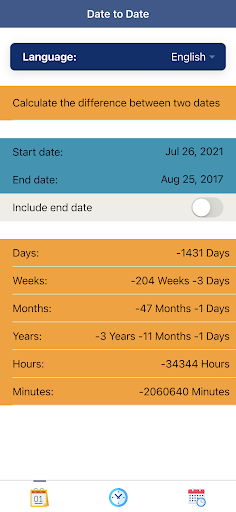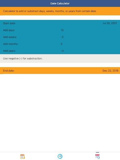The duration calculation in “Date Calculator Plus: Time, Dates, and Calendar” is broken down into days, weeks, months, years, hours, and minutes. This “Date Calculator Plus: Time, Dates, and Calendar” app can be used in your daily life, such as calculate your exact age, age difference, duration to certain dates, and many more. Download it now!