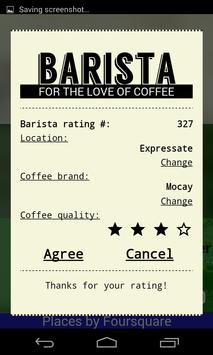 Just take a look at coffee shops nearby and see both Foursquare and Barista scores. And if you like one brand in special, just filter the locations; it's that easy!