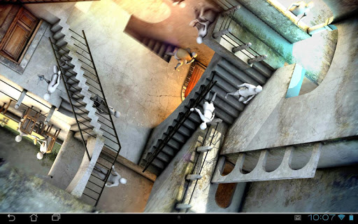 An amazing 3D live wallpaper on Google Play for your phone or tablet! Welcome to the world of impossible reality of Escher! Fully 3d version of one of the best M.C. Esher creations "Relativity" with amazing universe where normal laws of gravity do not apply! Now you can learn this fantastic painting real deep with help 5 different cameras! 2 cinematic tour cameras will take to every corner of this fascinating scenario. Soft lighting and photo realistic look will suit perfectly for phone background.
