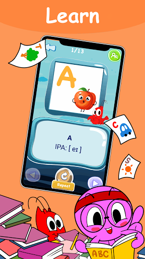 Choose the English option and download the flashcards to learn A-Z, pronunciation, and vocabulary. Each flashcard is illustrated with colorful picture to help you memorize the words better.