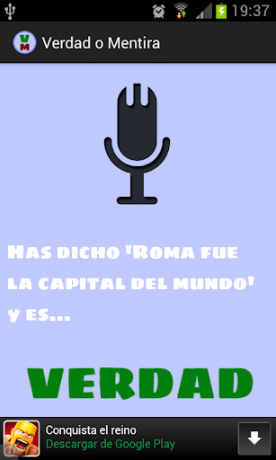 "Verdad o Mentira" es un detector de mentiras en el que dices una frase y, analizando la voz, detecta si estás mintiendo o diciendo la verdad.