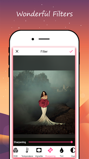 * Adjust color: Brightness, contrast, saturation, exposure, highlights, shadows, rgb, temperature, vignette, sharpening, tint, hue, gamma..