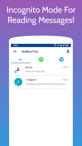 When you receive a message from a chat app, it will also be displayed in NoBlueTick. There, you can read it whenever you want, without any of your friends knowing that you have seen it.