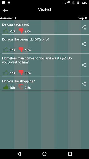 Simple quiz series to kill time with yes or no answers. After giving answers you will see opinions of other people as well. You can play this quiz with friend as well and see whose answer matches with others.