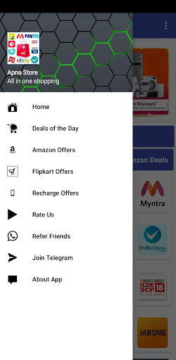 Online Shopping all app contains Amazon, Flipkart, Snapdeal, Paytm, Shopclues, ebay etc Best all in one Shopping app give you update of fresh clothes, New Arrival Clothes.