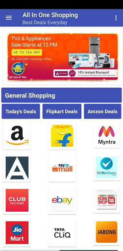 All in One Shopping app Amazon, Flipkart, Snapdeal, ShopClues, Paytm, Myntra ,Ajio