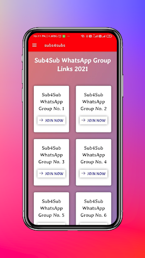 Join unlimited Sub4Sub Group for WhatsApp with one click. Download Sub4Sub App Now.