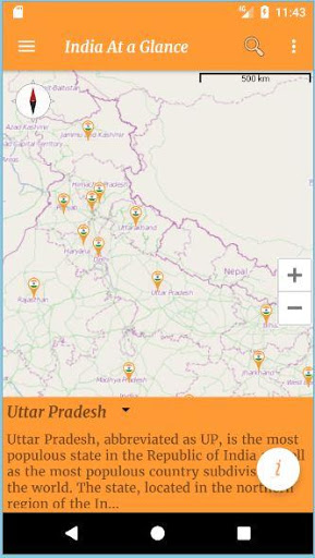 For ease of use, it has an offline map with all (zoom, compass, scale) features. You can pick up the location(State or Union Territory) and explore information about that State or Union Territory.