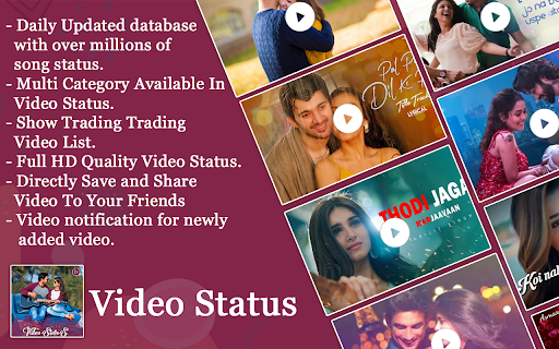 ๐จ๐ซ ๐๐ก๐๐ญ๐ฌ๐๐ฉ๐ฉ App serves a variety of short videos which are suitable to post on Social Media. You can get video status of all categories in this app. The App has fast servers for video status downloading and sharing. Trending Songs: Here you get access to the songs which are being loved by everyone. Video song status application is the user-friendly application that's why a user can easily access the application.