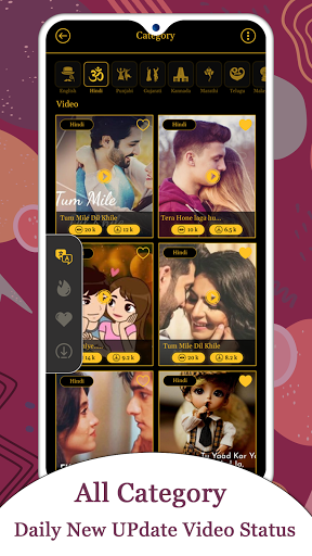 ๐จ๐ซ ๐๐ก๐๐ญ๐ฌ๐๐ฉ๐ฉ include various category video status like Hindi Video Status, English Video Status, Punjabi Video Status, Gujarati Video Status, Malayalam Video Status, Kannada Video Status, Telugu Video Status, Bhojapuri Video Status include all this in one app.
