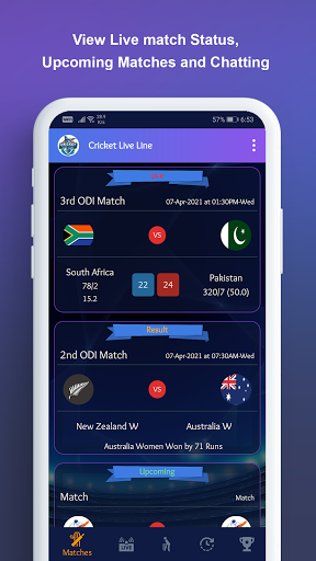 Cricket Live Line is best and fastest app on Play Store giving Live Cricket details before TV, our Cricket live Score app will update before ball.