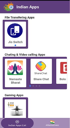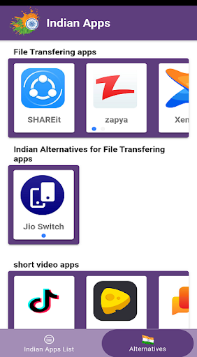 This application provides a list of all Indian apps. You can direct download or view the app by only one click. You also get list Indian alternatives for all popular apps.