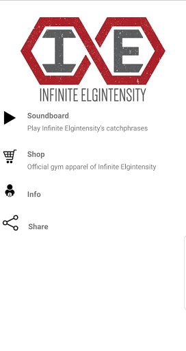 Gym Apparel Store *Optimized for smartphones and tablets *Push notifications of exclusive pre-orders and flash sales Soundboard *High-quality recordings of over a dozen catchphrases from Infinite Elgintensity's videos