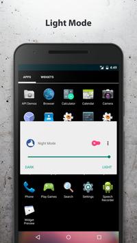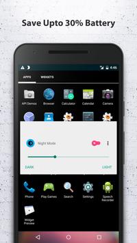 Night Mode & Battery Saver is a Material Design Application which can protect your eyes from being hurt by screen, creating a mask at the top of screen in order to make screen darker. We can solve the problem that the lowest brightness is not low enough in some devices by using night mode..