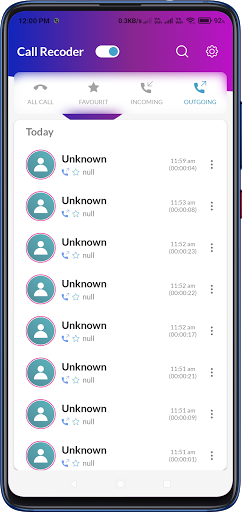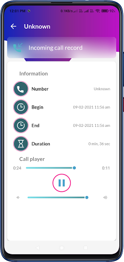 Search for recordings by contact or phone number. There is no limit in to call recording time it can save up to hours.