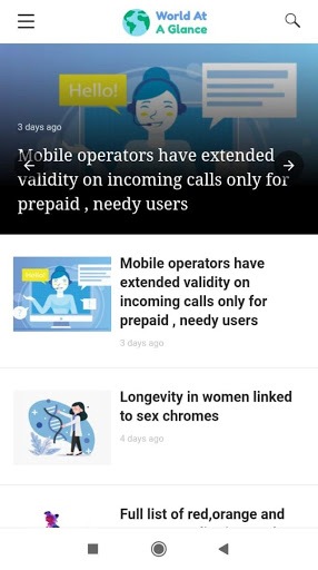 The official World At A Glance app brings you the latest news across the world in diverse categories including science & technology, finance and economics, entertainment, business, health & fitness etc. It has been launched on 17th June,2020 . Now you can easily access the recent news on all aforesaid categories just by downloading the app.