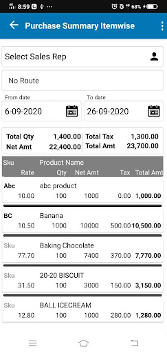- Sales & Collection grouped by Route/Salesman on Daily/Weekly/Monthly basis