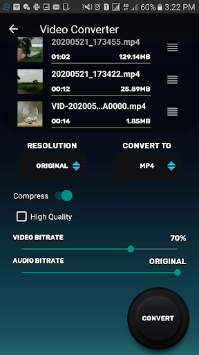 The above features work faster than any app in the market. This will save your time considerably. This MP3, AAC, AC3, WAV, OGG, M4A, FLAC, MP4, MKV, AVI, 3GP, FLV, MTS, MPEG, MPG, M4V, MOV, VOB, WMV video audio Conversion and Compression app for android is all you need for your converting and compressing need.