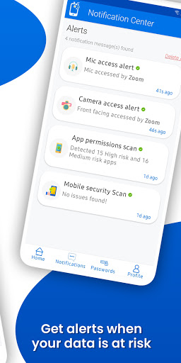 Malware apps just scan your mobile phone for the presence of malware or malicious apps. Our Mobile security app provides you a comprehensive security solution to protect your data. You can save passwords on your phone, check if someone rooted your device or if some apps have permissions to access a microphone, camera, or something else without your knowledge!