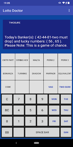 The Lotto Doctor is an innovative application and first of its kind. It provides users with current and past lotto results and can predict likely winning numbers in a particular day. In addition, the application can be used by lotto forecasters to do their calculations. Users can also use the application to perm two or three numbers.