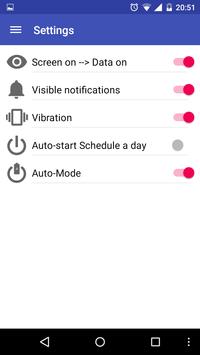 - Automatic activation of the data connection when the screen is unlocked or is turned on .