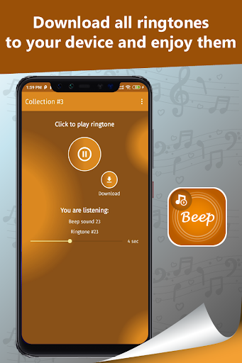 You are now in the Play Store available to download our new beep ringtones application. Download it right now and enjoy all the content. It has an excellent collection of ringtones just choose your favorite ringtone and customize it on your Android device to use them either as ringtones, SMS tones, alarms or notifications.