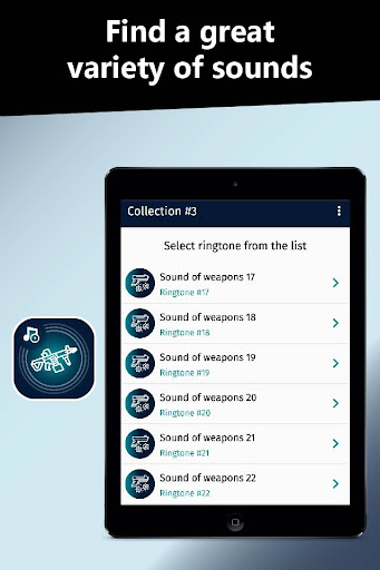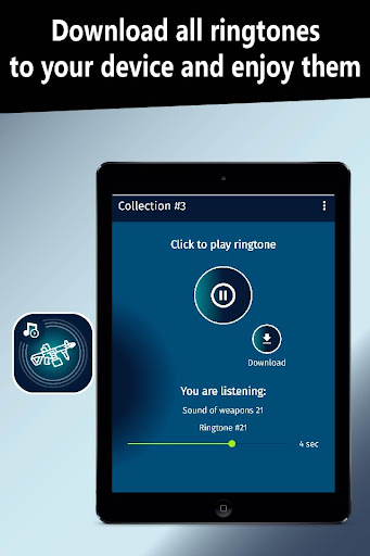 You are now in the Play Store available to download our new Weapons ringtone application. Download it right now and enjoy all the content. It has an excellent collection of ringtones just choose your favorite ringtone and customize it on your Android device to use them either as ringtones, SMS tones, alarms or notifications.